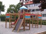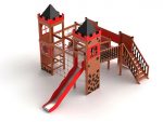 AlgemeenIn de Apollo Kasteel speelplaats kunnen uw kinderen klimmen, glijden en fysieke activiteiten zoals optrekken veilig en plezierig uitoefenen. In al onze speelplaatsen hebben we houten spel groepen.