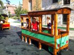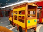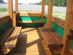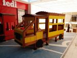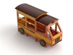AlgemeenDe Bus is precies op tijd! Deze houten speelplaats ziet er uit als een bus, er zijn zelfs zitplaatsen en een stuur.