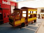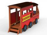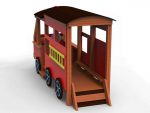 AlgemeenBrandweerwagen op weg om de vlammen te doven! Dit houten speeltuighoek oogt visueel op een brandweerwagen en omvat besturing en stoelen.