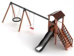 AlgemeenIn onze enkel-toren en schommel speelplaats bevinden zich de functies zoals glijden en schommelen.