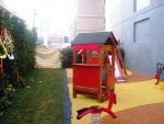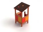AlgemeenDeze speel huisje heeft klimstenen bij de ingang en bestaat uit houten elementen, kinderen kunnen hierin velig en plezierig spelen.